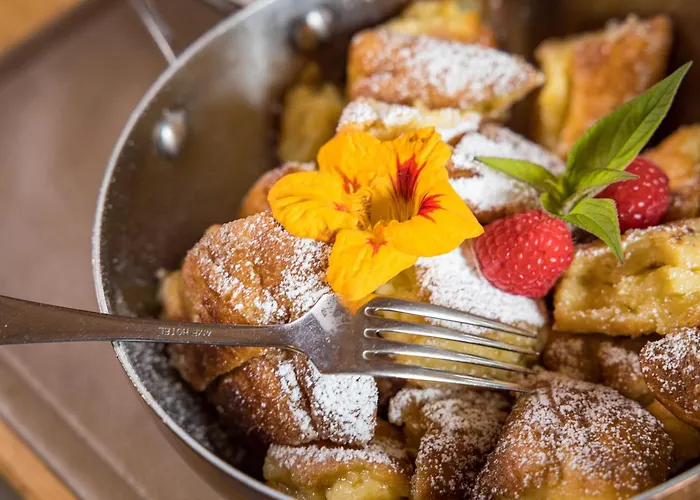Ein tolles Frühstück wird im Speisesaal serviert. Im À-la-carte- Restaurant fuer Halbpensions Gaeste kann man österreichische Küche genießen. Es gibt auch eine Lounge- Bar.